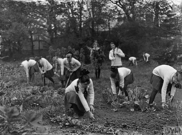 Girls at work on an allotment in the grounds of their school during the First World War © IWM (Q 31160)